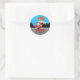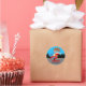 Diseño de pegatinas en un tema de niños superhéroes con fondo azul de explosión de sol.