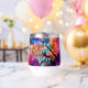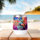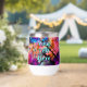 Una imagen fractal muy abstracta de colores vivos (naranja, azul, rosa, amarillo, negro). Personalizar agregando su propio texto.