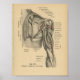 Impresión de anatomía de 1888 en alemán. Ilustracion anatómico humano vintage de la Mano Atlas der Anatomie de Henke. Vista posterior de los músculos, arterias y nervios del hombro y el brazo. Schulter u. oberarm von hinten