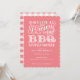 Esta invitación a la ducha de parejas divertidas tiene un fondo de guijarros rosados para preparar el escenario de tu ducha de "cerveza y barbacoa". ¡Sería genial para una ducha de bebé o una ducha de novia!