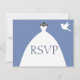 RSVP con esta encantadora invitación azul de vestido de novia. Con un vestido blanco boda con una paloma en la esquina superior derecha. ¡Compra el tuyo hoy! Vestido y paloma boda: https://www.etsy.com/shop/WinchesterLambourne