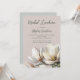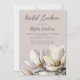 Planilla de invitación a la ducha con flores de magnolia blanca. Para la novia del sur, grandes flores blancas decoran el fondo de un papel beige rosado. El texto es muy verde oscuro con el título fiesta y el nombre de la novia en escritura moderna. Cambia el título para un almuerzo, una ducha de boda o un té nupcial. Se muestra en papel con un borde de vieiras, que puede cambiar fácilmente.