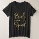 Camiseta de cuello-V más tamaño de escuadrón de novia negro con Relieve metalizado de oro falso (parece, imitación) texto de guión y gráficos de corazón y flecha. Estos camisetas son perfectos para una fiesta de soltera o una ducha de novia.