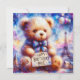 Un oso de peluche lindo, celebrando el cumpleaños de Brie. Los saludos en la tarjeta son "Feliz cumpleaños a Brie". En la parte trasera de la tarjeta hay una pequeña versión de la imagen delantera, y mucho espacio para escribir un mensaje. Hecho con la ayuda de AI Bing.