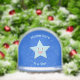 This awesome snow globe features a graphic image of a blue five pointed star with huge eyes and a big smile.