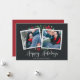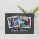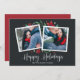 Elegante y festiva tarjeta fotográfica navideña encuadra dos de tus fotos cuadradas favoritas con un sutil borde de borde enredado y un follaje de vacaciones rojo y verde asomándose a las esquinas. "Felices Fiestas" aparece a lo largo de la parte inferior en la escritura de caligrafía blanca, con sus nombres y el año por debajo.