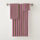 Add bold color and cheerful energy to your bathroom with this modern pink and green striped pattern towel set.