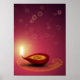 Feliz Ilustracion Diwali: diya roja (una lámpara de aceite india en forma de taza) con una mandala ornamental india y un paisley en un hermoso fondo de bokeh.