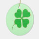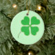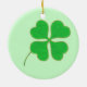 Pintura de un trébol verde brillante de cuatro hojas, de shamrock, adornado con puntos dorados, impreso a ambos lados de adornos de cerámica. Se puede personalizar. Para elegir un color de fondo diferente, haga clic en Personalizar, luego en Editar, luego en Fondo y, a continuación, en el color de su elección.
