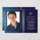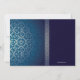 Un brillante patrón plateado, abstracto sobre un fondo azul gradiente con un guarnecido de cinta de plata hace una hermosa invitación para casi cualquier ocasión. La cruz puede arrastrarse a cualquier lugar, hacerse más grande o más pequeña (+-) o eliminarse, lo que hace que esta sea una invitación versátil.La tarjeta es fácil de personalizar con su redacción, fuente, color de fuente y elección de seis tipos de papel.