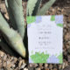 Esto ahorra la fecha presenta un colorido diseño suculento verde y azul, perfecto para bodas del desierto o del suroeste. Este diseño está inspirado en la belleza natural de los suculentos e incorpora brotes divertidos de color. Anuncie su día especial a su familia y amigos, y edite fácilmente nombres, fecha, ubicación y sitio web para asegurarse de que sus invitados tengan toda la información que necesitan.