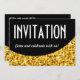 Invitación con un diseño moderno que presenta estrellas dispersas sobre una forma curva estilizada con "aspecto de lentejuelas" en tonos de oro amarillo sobre un fondo negro con 'Invitación' '¡ven y celebra con nosotros!' escrito en blanco. Se puede utilizar como fondo para su propio texto, imágenes e ideas. El texto se puede cambiar fácilmente utilizando la plantilla proporcionada o haga clic en el botón 'Personalizar' para realizar más cambios. Tenga en cuenta que esta es una imagen de arte digital impresa, no brilla ni contiene purpurina o lentejuelas reales.