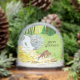 Un orbe de nieve con una hermosa escena forestal que incluye una cierva y un cervatillo bebiendo de un arroyo cerca de una cascada. Obra de arte original de W.B.