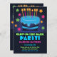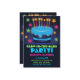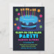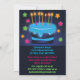 La invitación tiene una tarta de cumpleaños brillante con velas y resplandor en las estrellas oscuras. Muy divertido para una fiesta de cumpleaños o una celebración. La invitación es brillante, colorida y sin duda captará la atención de los destinatarios.