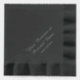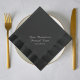 Eleva tu elegante cena o evento especial con estas servilletas personalizadas de papel negro. Perfecto para bodas, eventos corporativos o fiestas formales, cada servilleta presenta un guión sofisticado en la impresión de Relieve metalizado real. Elija entre Relieve metalizado de plata, oro rosa o oro para que coincida con su tema. Vendidas en conjuntos de 50, estas servilletas le dan un toque de lujo y refinamiento a cualquier mesa.