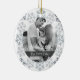 Un moderno ornamento de cerámica blanca Gray Snowflakes Holidays para su decoración en esta temporada de vacaciones. Personalizar con tu foto para un toque personalizado.