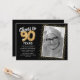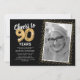 Celebra el gran hito de cumplir noventa años con nuestras elegantes invitaciones de fiesta de cumpleaños. Con un fondo negro de moda personalizable, un espacio para una foto personal y toques dorados, estas invitaciones seguramente dejarán una impresión duradera. Los detalles de globos de helio dorados añaden un toque de magia, mientras que la plantilla de texto de cumpleaños número 90 moderna es increíblemente fácil de personalizar. ¡Porque el estilo no tiene límite de edad!