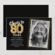 Celebra el gran hito de cumplir ochenta años con nuestras elegantes invitaciones de fiesta de cumpleaños. Con un fondo negro de moda personalizable, un lugar para una foto personal y toques dorados, estas invitaciones seguramente dejarán una impresión duradera. Los detalles de globos de helio dorados añaden un toque de magia, mientras que la plantilla de texto de cumpleaños número 80 moderna es increíblemente fácil de personalizar. ¡Porque el estilo no tiene límite de edad!