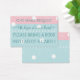 Trae un libro "Baby Peek-a-Boo Pink/Blue" Tarjeta de inserción / Personalize Disfruta de esta linda tarjeta de inserción de "Bring-a-book" para la diversión de la ducha de bebé. Este diseño "Baby Peek-a-Boo Pink/Blue" de dos caras es fácil de personalizar en el frente y en la espalda. Simplemente borra el texto y agrega tu propio mensaje. Elija su estilo de fuente, tamaño y color favoritos. Esta colección "Baby Peek-a-Boo Pink/Blue" también tiene placas de libros a juego, invitaciones, pegatinas y mucho más. Muchas gracias por detenerse y ir de compras. ¡Siempre apreciado! ¡Feliz Baby Shower! Tamaño: tarjeta de visita de tamaño europeo, 3.346" x 2.165" Cuando se trata de tu negocio, no esperes a la oportunidad, crearla! Deja huella con unas tarjetas de calidad que impresionen a todo el mundo. Tarjetas de visita de tamaño estándar en Europa, ¡ideales para nuestros amigos europeos! Dimensiones: 3,346" x 2,165" Proceso de impresión CMYK a todo color Impresión a doble cara sin costo adicional 100% de satisfacción Garantía de tipo de papel: Matte estándar A clásico, todo alrededor del papel con un toque natural y un acabado mate sin recubrir; nuestro mate estándar representa la prueba del tiempo. Los colores impresos son más suaves y tenues, dándole un toque elegante y sutil a tus diseños. Espesor de 17,5 pt / peso de 120 lb / 324 GSM El acabado mate claro blanco sin revestir con una textura de concha de huevo El papel es fácil de escribir y no se mancha Fabricado e impreso en los Estados Unidos