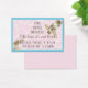 Trae un libro "Baby Sea Turtle/Pink" Tarjeta Insertar/Personalize Disfruta de esta linda tarjeta de inserción de "Bring-a-book" para divertirse en la ducha de bebé. Este diseño bilateral de "Baby Sea Turtle/Pink" es fácil de personalizar delante y detrás. Simplemente borra el texto y agrega tu propio mensaje. Elija su estilo de fuente, tamaño y color favoritos. Esta colección de "Baby Sea Turtle/Pink" también tiene placas de libros a juego, invitaciones, pegatinas y mucho más. Muchas gracias por detenerse y ir de compras. ¡Siempre apreciado! ¡Feliz Baby Shower! Tamaño: tarjeta de visita de tamaño europeo, 3.346" x 2.165" Cuando se trata de tu negocio, no esperes a la oportunidad, crearla! Deja huella con unas tarjetas de calidad que impresionen a todo el mundo. Tarjetas de visita de tamaño estándar en Europa, ¡ideales para nuestros amigos europeos! Dimensiones: 3,346" x 2,165" Proceso de impresión CMYK a todo color Impresión a doble cara sin costo adicional 100% de satisfacción Garantía de tipo de papel: Matte estándar A clásico, todo alrededor del papel con un toque natural y un acabado mate sin recubrir; nuestro mate estándar representa la prueba del tiempo. Los colores impresos son más suaves y tenues, dándole un toque elegante y sutil a tus diseños. Espesor de 17,5 pt / peso de 120 lb / 324 GSM El acabado mate claro blanco sin revestir con una textura de concha de huevo El papel es fácil de escribir y no se mancha Fabricado e impreso en los Estados Unidos