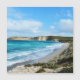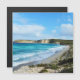 Se trata de una vista panorámica de las aguas del mar azul acuático que se desliza sobre una arena blanca con vistas a los acantilados y a la vegetación exuberante