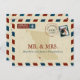 Un divertido Boda creativo Gracias Postcard a enviar a toda su familia y amigos. Diseño de Airmail en rojo y azul con mapa de Columbia Británica Canadá con un corazón sobre la isla de Vancouver. Agregue su foto boda favorita para colocarla en el área de sellos. Personalice con un mensaje especial en la parte posterior. Si tiene una ubicación diferente, por favor avísenme y configuraré una para esa ubicación. Correo electrónico paula@labellarue.com