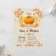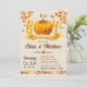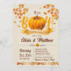 La invitación incluye calabaza naranja con hojas. Este diseño es perfecto para una ducha de bebé con temática de otoño.