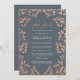 El espléndido efecto de Relieve metalizado falso de bronce deja el borde en este moderno modelo de diseño para una invitación a la ducha de novia. Personalízalo en línea aquí y ahora sólo editando el tipo. Escriba el texto de ejemplo a la derecha o haga clic en el botón personalizar para tener más oportunidades de edición (como cambiar la fuente, el tamaño, el color, etc.)