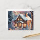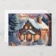 Envíe dulces deseos de vacaciones con esta encantadora postal de Navidades que cuenta con una acogedora casa de jengibre decorada con dulces, gotas y heladas nevadas. Rodeado de árboles de Navidad y juguetones galletas de jengibre, esta festiva escena de invierno incluye el alegre mensaje "Feliz Navidad". Perfecto para enviar saludos mágicos a amigos y familiares.