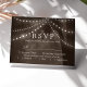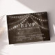 Complete su suite boda con este RSVP de Bodas de Woodland RSVP. Con un encantador árbol rústico marrón adornado con luces de cuerda onduladas, esta tarjeta RSVP se complementa perfectamente con el tema de los bodas de bosque o al aire libre. El diseño etéreo capta la belleza de la naturaleza, añadiendo un toque de brillo a tu día especial. Personalízalo para reunir las respuestas de sus invitados con estilo