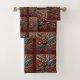 🤎 Tooled Brown Faux Leather & Teal Feathers Towel Set 🤎