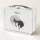 Bruja Tipsy En El Dormitorio Volador, Caja De Almuerzo. El circe es una silueta de bruja tibia contra una luna llena, sosteniendo su botella de vino. Un diseño transparente que se ve bien con un fondo blanco, pero las estrellas brillan más sobre un fondo más oscuro.
