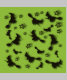 Bruja voladora entre las estrellas en la noche de Halloween en verde
