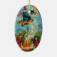 Una bruja, un gato negro, los imps y una hoguera adornan este ornamento. Imagen de la postal de Halloween del vintage.