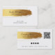 Colores dorados de brocha sobre un fondo blanco acentuado con un marco geométrico dorado. El código QR es opcional.