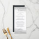 Moda y elegante menú boda en blanco y negro con ocho campos de texto editables con sus nombres y fecha de boda en la parte superior, acentuados por los lavados de acuarela de color gris claro. Diseñado para coordinar con nuestra colección de bodas húmedos. Utilice los campos de plantilla para agregar la información del menú y, a continuación, haga clic en "Personalizar" para volver a colocar los elementos si es necesario.