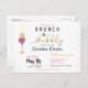 ¡A todos les encanta la mimosa! Celebremos a la futura novia con esta adorable postal rústica de brunch y burbujeante ducha de novia con una falsa copa de champán purpurina de oro con burbujas, un adorable corazón rosa y las iniciales de la pareja. Esta invitación es perfecta para una ducha nupcial de primavera
