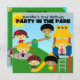 Fiesta de Brunette Chica en las invitaciones de cumpleaños de Park que usted puede fácilmente personalizar con el nombre de su hijo y detalles de la fiesta de cumpleaños antes de hacer el pedido. Cuenta con varios niños jugando en el parque en el tobogán, divertirse y teeter tóter, y un chica de brunette en un columpio en la parte trasera de la invitación!