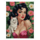Presentamos "Brunette Pin-Up with Cute White Cat Poster" de VintagePrintHaven, una pieza impresionante que encarna el encanto del glamour vintage. Esta cautivadora obra de arte cuenta con una llamativa morena de voluminoso cabello retro, vestido con una lujosa bata de satén rosada que destaca su elegancia clásica de los años 50. Un broche brillante adorna su vestido con un toque de sofisticación. Está rodeada por un vibrante telón de fondo floral de hojas verdes y flores rosas y blancas florecientes, creando un ambiente soñador y nostálgico. Enclavado a su lado hay un adorable gato blanco con ojos penetrantes y verdes, que le dan un encanto juguetón a la escena. Perfecto para los amantes del arte y de la belleza felina, este poster es imprescindible para añadir un toque retro a su decoración.