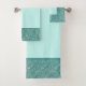 Este juego de toallas de baño incluye una impresión de burbujas verdes turquesas. ¡Las burbujas parecen mojadas y brillantes como deberían ser las burbujas reales! Esta impresión viene de los azulejos hechos a mano. La mayoría de las toallas son de color verde claro. Esto está diseñado para usted por el fabricante de baldosas de Oregón Fay Jones Day.