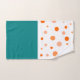 Este juego de toallas tiene un diseño con un fondo sólido y círculos en la parte superior. Está decorado con colores modernos de mediados de siglo. Me parece a las burbujas de refrescos, de ahí el nombre.