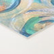 Representación vibrante de una cara budista serena, con motivos intrincados y una mezcla de colores vivos como el azul, el verde y el naranja. La expresión pacífica y los ojos cerrados exudan un sentimiento de tranquilidad y espiritualidad.