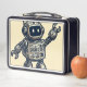 Una caja de almuerzo con el diseño de un robot Buddy One.