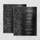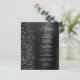 This elegant modern wedding menu features a faux diamond glitter border on a black faux brushed metal background. The customizable text combines white handwriting script and sans serif fonts. The black brushed metal and glitter design is repeated on the reverse side.