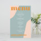 Abstract shapes retro vintage 70s style unique budget affordable wedding menu card with bold typography in a pastel trendy modern dusty blue, soft pink and orange chic color palette. +++++++ Please note that all the colors are changeable. ++++++++++++ Suitable for informal casual stylish contemporary weddings.