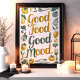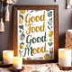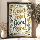Con esta pintura mural "Buena comida, buen humor" se añade una pizca de positividad a la cocina. Con guijarros con letras a mano rodeados de ilustraciones verdes y amarillos de frutas, verduras y utensilios de cocina, el diseño es perfecto para crear un ambiente fresco y acogedor. Ideal para los amantes de la gastronomía y los cocineros caseros, esta obra de arte nos recuerda con alegría que la buena comida da paso a un buen humor.
