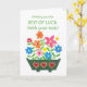 Una tarjeta de la Buena Suerte con las Pruebas, con una ventana llena de flores de colores vivos, de un collage de papel pintado a mano de Judy Adamson. También hay regalos coincidentes y otras tarjetas de felicitación disponibles en mi tienda.