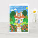 Una carta de "Buena Suerte con tu Movimiento" con un saludo español y una casa de campo de bonito de un collage de papel pintado a mano de Judy Adamson. El interior se deja en blanco para tu propio mensaje y el saludo delantero se puede cambiar poniéndome en contacto conmigo a través de mi tienda.