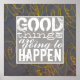 poster motivacional cita texto sobre el arte abstracto cuadrado gris y amarillos buenas cosas van a suceder. Derechos de autor abstractos originales de las obras de arte Ann Powell