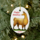 Diseño original de la bella arte de una llama alerta del artista Carolyn McFann del estudio de ronroneo en una calidad, ornamento de cerámica adaptable de dos gatos del día de fiesta.